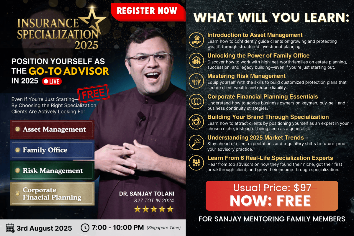No matter how good you think you are at financial planning, there are proven practices and techniques that the pros use to close their prospect - practices and techniques that Dr. Sanjay will personally cover.